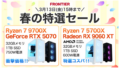 Ryzen 7 9700X RTX 5070 MSIコラボ・Wi-Fi 6E 329,800円