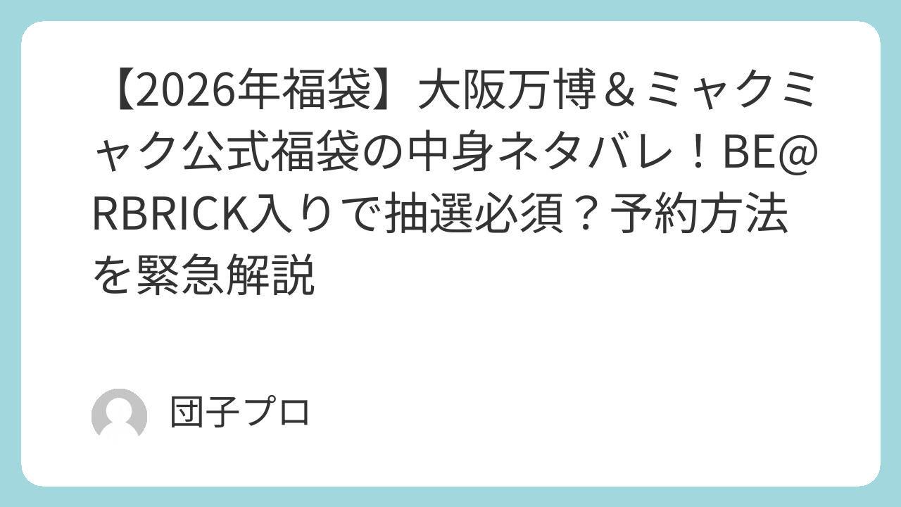 【2026年福袋】大阪万博&ミャクミャク公式福袋の中身ネタバレ!BE@RBRICK入りで抽選必須?予約方法を緊急解説