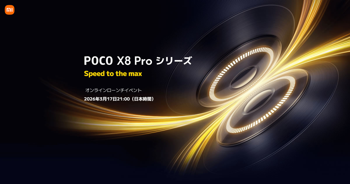 POCO X8 Proシリーズは 2026年3月17日(月)午後9時 にグローバル発表が行われ、同日午後10時より日本での販売も開始される見通しです(Xiaomi Japan公式アナウンスより)。グローバル発表と国内発売がほぼ同日というスピード感のある展開です。