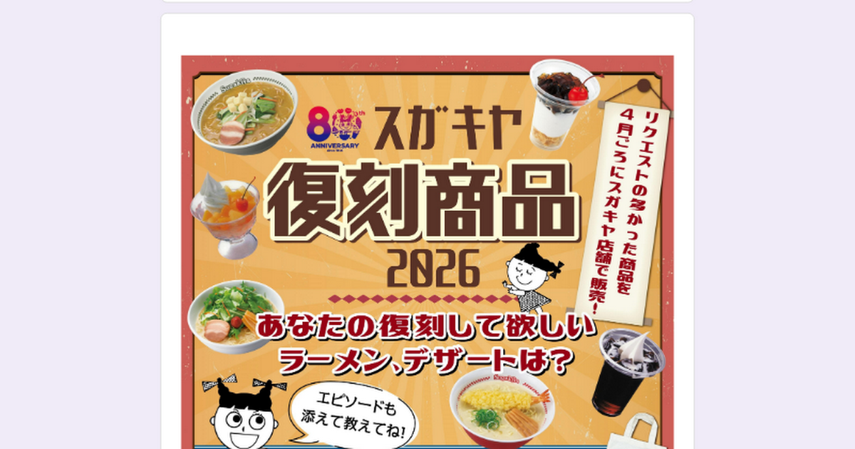 6. 予告】あなたの1票で決まる?「スガキヤ復刻商品 2026」