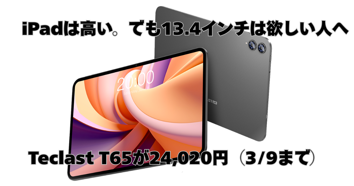 そんな人に刺さりそうなのが、Teclast T65(256GB)。iPadみたいな体験を全部求める端末ではないけど、「大画面を安く手に入れる」目的なら選択肢になります。